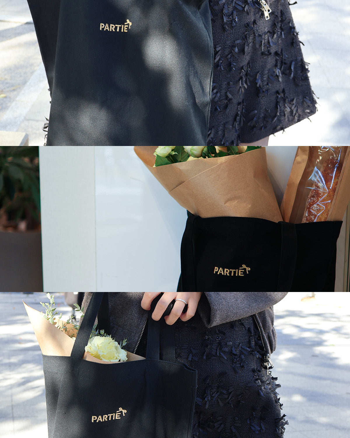 フェアセット商品を含め23,000円以上お買い上げの方にプレゼントとしてお送りするPARTIEトートバッグは商品とは別に5月15〜18日ごろにお届けします。